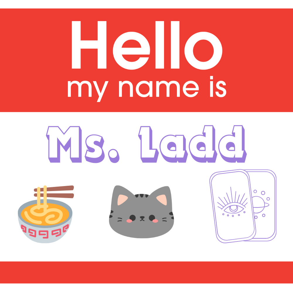 Prompt: Design a creative “Hello, my name is…” card.
